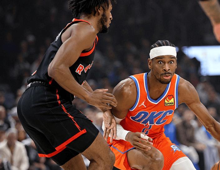 NBA常规赛,雷霆坐镇主场迎击猛龙。本场比赛之前,雷霆37胜9负排名西部第一,近段时间他们的状态有一些起伏,上一场还输给了东部倒数的步行者,不过事实上,雷霆依旧是今年最有统治力的一支队伍,战绩稳居联盟第一的同时,其场均得分,防守效率等多项数据都排在联盟第一。毕竟也是卫冕冠军,连续三年的常规赛西部第一,雷霆也积累了一定的强队底蕴了,同时不缺乏季后赛经验,还有亚历山大这种MVP级别的当家球星率领。另一边的猛龙,28胜19负排名东部第三,作为东部超级黑马,他们的实力也不容小觑。